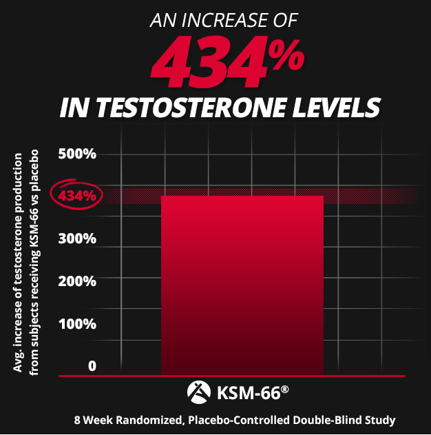 In an 8 week study vs placebo, KSM-66 boosted T levels by 434%.
